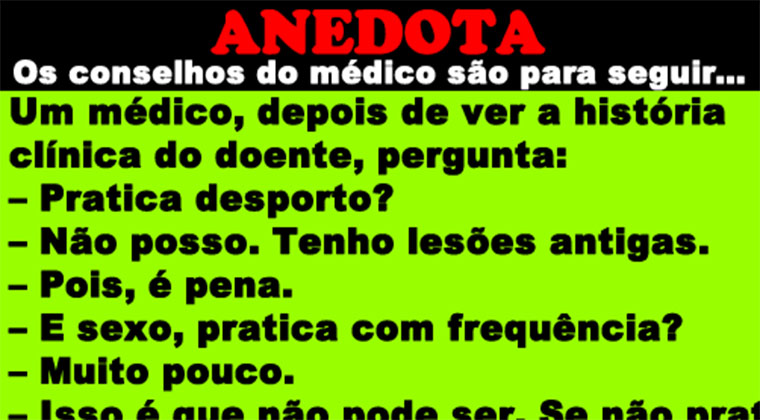 Um amigo apanha outro no WC a urinar sentado na sanita: – Mas o que é isto, os homens mijam de pé! O que te aconteceu??? – Olha, na 2ª feira passada saí com uma loira, 1,80 m, um corpo inacreditável, e na hora H murchei! – Na 3ª saí com uma morena, 20 anos, …
