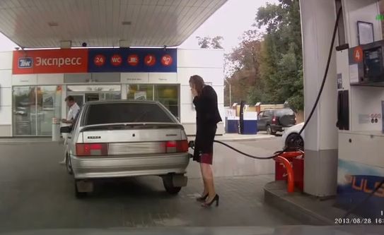 Mais um grande vídeo vindo directamente da nossa tão amada Rússia. Desta vez foi uma mulher loira que foi a uma bomba de gasolina para abastecer o seu carro e acontece tudo e mais alguma coisa. Só visto! Loira a meter combustível por muitobomtv