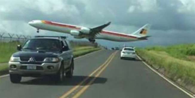 Avião da Ibéria quase toca nos carros a aterrar! Arrepiante!