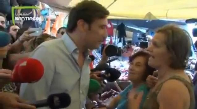 Durante a visita a uma feira Pedro Passos Coelho deparou-se com uma senhora desempregada manifestando a sua insatisfação dizendo que Passos Coelho devia comprar