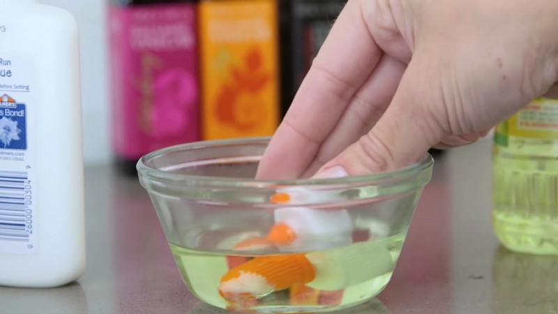 3. Frasco da cola branca entupido? Uma solução prática e fácil é mergulhar a tampa ou bico dentro de uma taça com óleo vegetal.