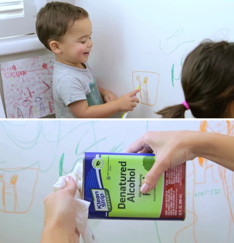 8. O teu filho adora transformar as paredes da casa em obras de arte? Sem problemas, podes limpá-las usando álcool desnaturado. Mas testa antes num lugar menos visível!!!