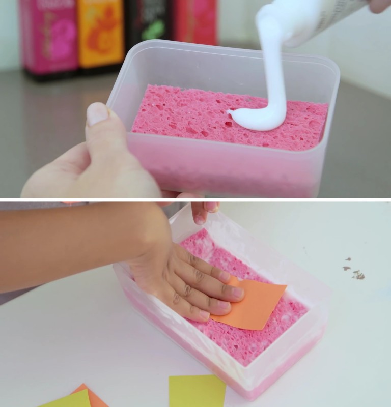 14. O teu filho queria só um pouquinho de cola, mas acabou por virar o pote inteiro outra vez? Coloca uma esponja de lavar pratos dentro de uma vasilha de plástico e despeja cola por cima. As crianças poderão passar na esponja o que querem colar, usando só a quantidade necessária. Ao fim da brincadeira, tapa o pote e guarda-o. Se a esponja ficar muito seca, molhe-a com um pouco de água e, em seguida, derrama mais cola por cima.